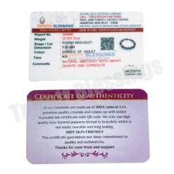 All our bracelets are made of 100% natural AAA premium quality crystals and comes with online trackable lab certificate with QR code. We only use high quality four layered Japanese thread in bracelets which is not easily tearable and long lasting.