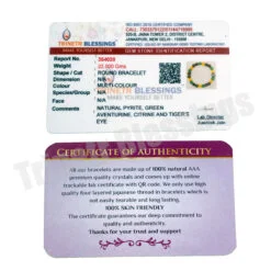 All our bracelets are made of 100% natural AAA premium quality crystals and comes with online trackable lab certificate with QR code. We only use high quality four layered japanese thread in bracelets which is not easily tearable and long lasting.